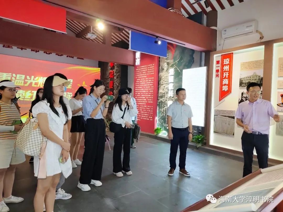 本次活动第二站是琼台师范学院。琼台师范学院前身是创建于清朝康熙年间的琼台书院。在讲解员的带领下,师生们走进琼台的红色历史,解读和回味琼台故事,通过走访参观与提问多种方式共同学习琼崖革命思想,掌握琼台书院的历史沿革,重温光辉历史,赓续红色血脉。