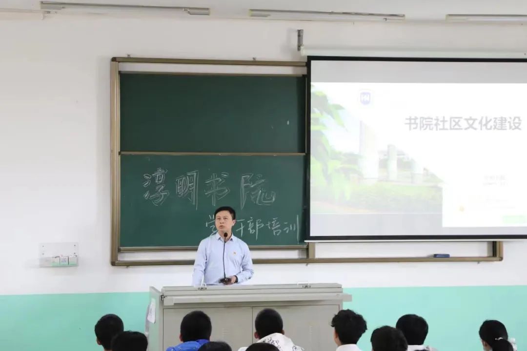 杨元广围绕“什么是书院制”、“为什么要书院制”、“书院制的好处”以及“书院社区文化建设”四个部分向同学们详细介绍了学校的书院制改革进展、书院社区文化建设情况。通过宣讲,同学们对于学校的书院制改革有了更多的认识,对william威廉亚洲官方社区文化建设有了更多的了解。旨在加强全院师生对社区文化建设凝聚共识,以主人翁的姿态积极参与,形成社区文化建设合力,推动书院改革工作。书院坚持以立德树人为中心,以培养个性化拔尖创新型人才为目标,传播海大校风校训,弘扬海大精神,不断丰富“淳美、明德、笃行、卓越”的书院内涵,践行书院“做更好的自己”的价值观,逐步形成书院特色文化。
