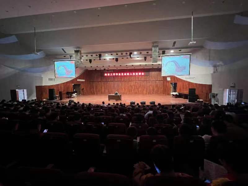 杨元广对毕业生留琼就业创业政策进行宣讲,他给毕业生们梳理了海南自贸港建设的发展历程,讲解了人才税收、落户、安居、购房、购车、子女入学、配偶就业、医疗保障等一系列专项政策,他说海南具有发展预期好、政策开放度高、地理位置独特、生态环境一流等优点,鼓励毕业生投身自贸港建设,加入国家发展战略,在海南就业创业,扎根落户,成就梦想。