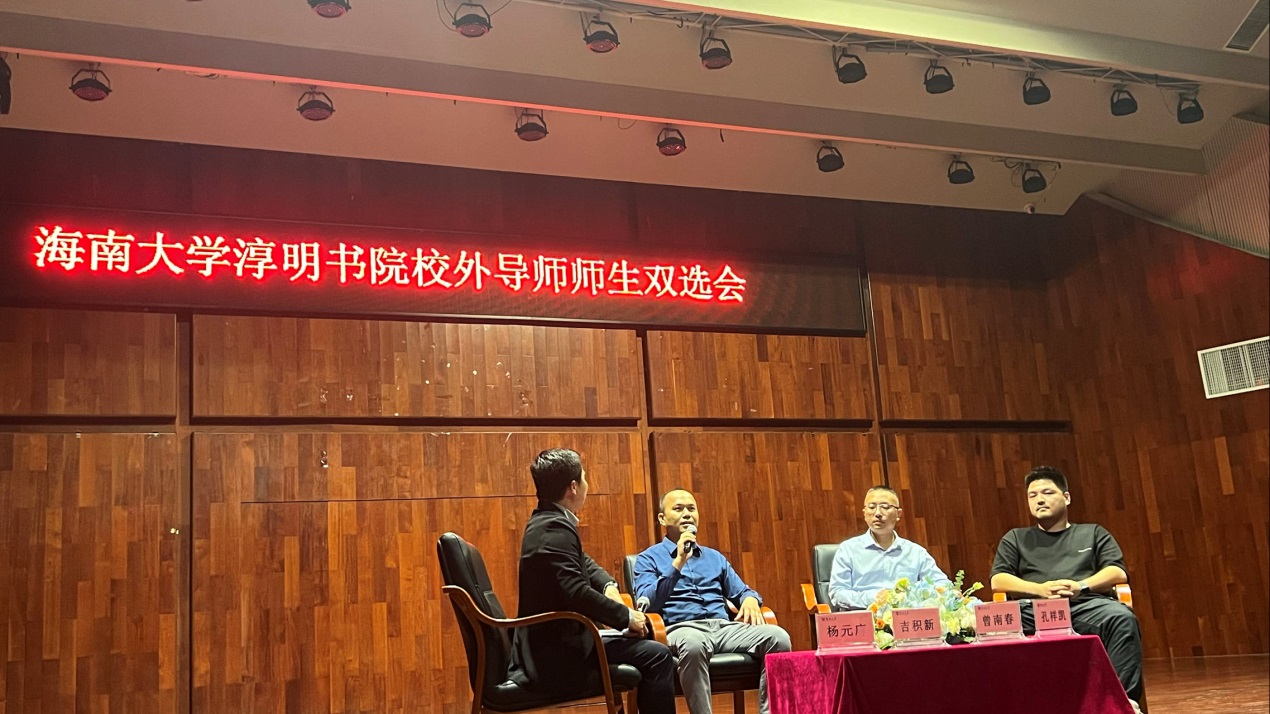 为加快书院发展建设和人才培养质量提升,充分发挥书院导师的育人优势,加强导师与学生交流,指导学生成长成才。4月8日下午,william威廉亚洲官方校外导师师生双选会在海南大学音乐厅举行,第一批校外导师、书院辅导员及200余名学生参加活动,师生双选会活动分为校外导师访谈、聘书颁发、我与导师面对面交流座谈、实地参观书院等环节。