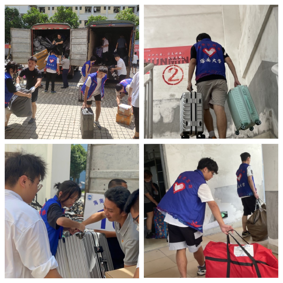 本次搬迁工作涉及校内搬迁和跨校区搬迁,分为6月30日上午和7月1日上午两 批次进行,搬迁人数共计475名。在两天的搬迁工作过程中,所有领导、老师与志愿者们齐心协力、通力合作,共同参与搬迁志愿服务工作。志愿者们分工合作,听从指挥,有序开展帮助同学们搬运行李,将学生们携带的行李从货车卸下并搬运到指定的学生宿舍,认真协调解决在搬运行李过程中出现的各种问题,尽管天气炎热,所有志愿者的衣服都被汗水浸湿,而且搬运的行李较多,但志愿者们依然充满干劲,热情十足,不辞辛劳地把行李从一楼送到二楼、四楼宿舍,在他们的身上,展现出志愿者们认真负责的工作态度和吃苦耐劳的精神,诠释了青年的责任与担当。