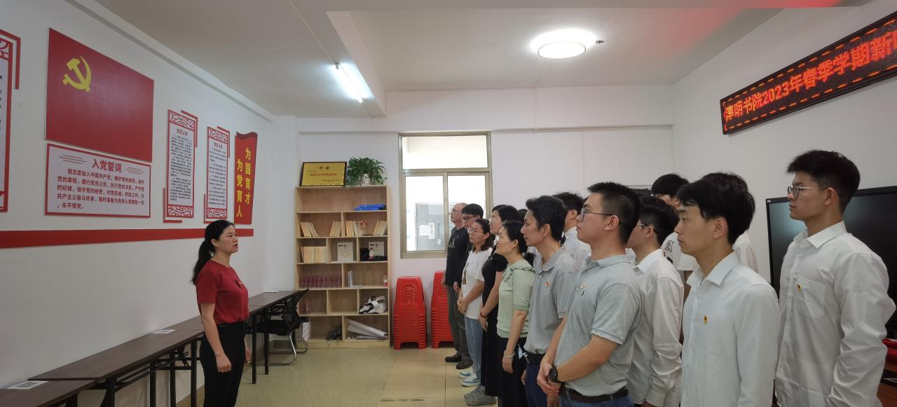书院党委副书记邱志春带领新老党员重温入党誓词,全体党员面向党旗,庄严宣誓,铿锵有力的宣誓是党员对党忠诚的决心,更是对组织作出的庄严承诺。