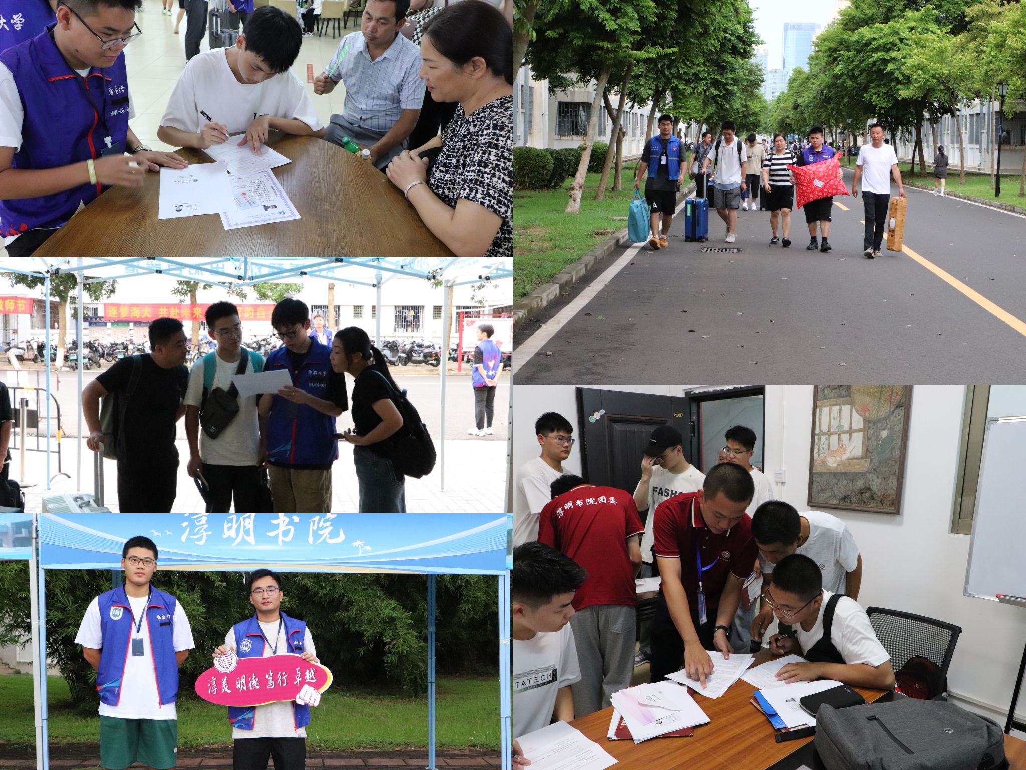 在迎新现场,随处可见穿着蓝马甲志愿者忙碌的身影,他们热情引导新生报到、搬运行李、指引路线、入住宿舍,为新生及新生家长们答疑解惑,让新同学们充分感受到william威廉亚洲官方大家庭的温暖氛围。一张张热情的笑脸,一句句亲切的问候,一项项贴心的服务,展现出了淳明学子积极向上、互助友爱的精神风貌。