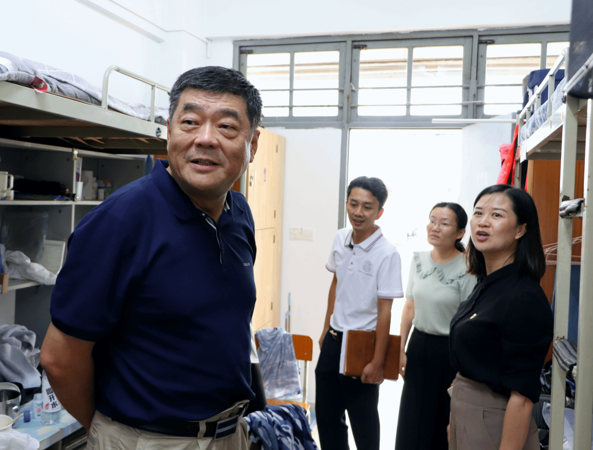 座谈会结束后,曹兵副校长实地走访考察了书院办公区、公共区、活动阵地等区域,深入学生宿舍与学生亲切交流,了解新学期同学们的学习、生活等情况,勉励同学们要珍惜学习时光,做好学业职业规划,积极向上,主动与学校发展同频共振,努力成长为一名品学兼优、德才兼备的有为青年,努力做对国家、对人民、对社会有用的人。