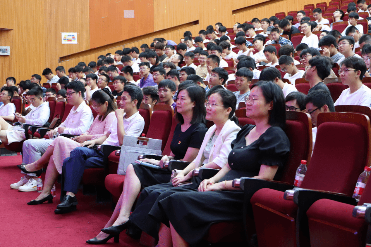 书院党委书记周郭军代表书院全体师生对2023级新同学的到来表示热情欢迎,并介绍了书院的基本情况、核心文化和育人理念,叮嘱同学们要尽快适应大学生活,做好生活学习规划,树立新的目标和努力方面,充分利用大学的资源和平台,不断成就自我,努力成长为品学兼优、德才兼备的优秀大学生。