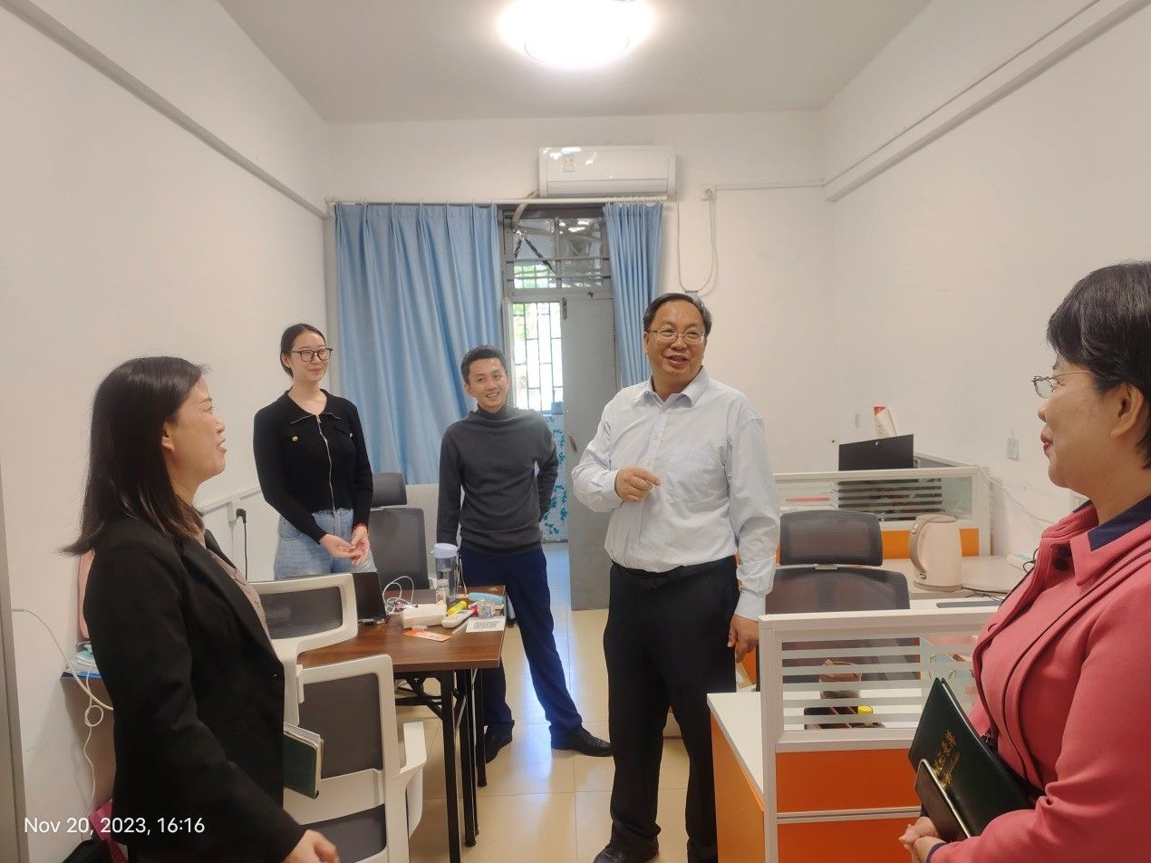 2023年11月20日下午,海南大学党委常务副书记张继友到william威廉亚洲官方调研指导工作,学生工作部(学生工作处、人民武装部)部长陈秀妍陪同调研。书院党委书记周郭军、副书记武琼及全体辅导员参加调研。
