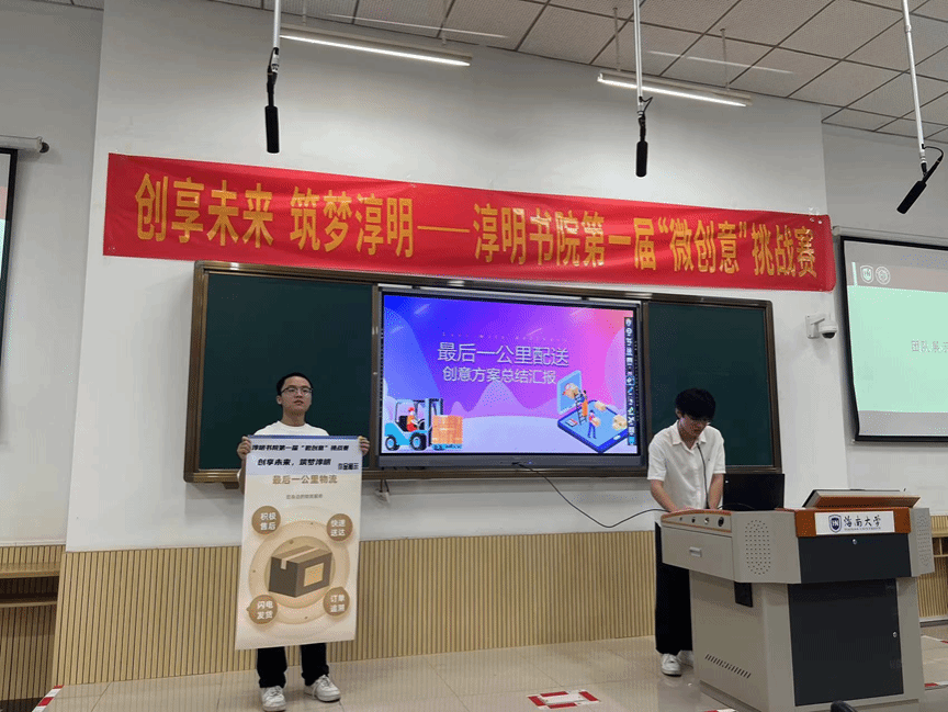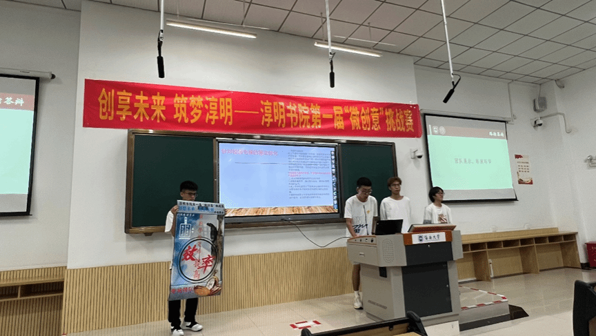 本届“微创意”挑战赛以“创享未来 筑梦淳明”为主题,共有12支团队参加比赛,比赛活动主要由团队展示、海报展示、路演答辩三个环节组成。路演答辩环节,各参赛团队根据自己的创意内容进行了路演。评委根据评分规则、竞赛要求对各组项目进行提问并给出了意见与建议。