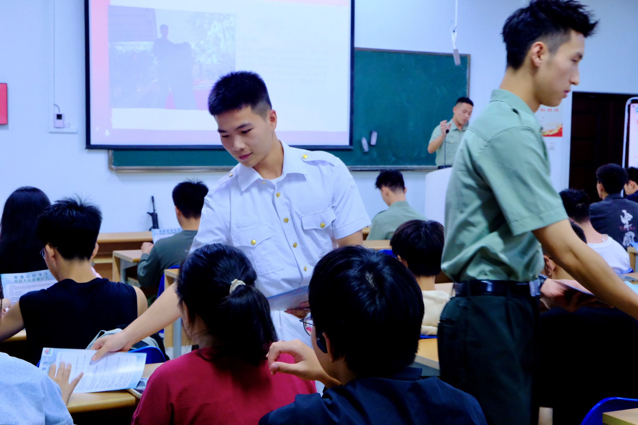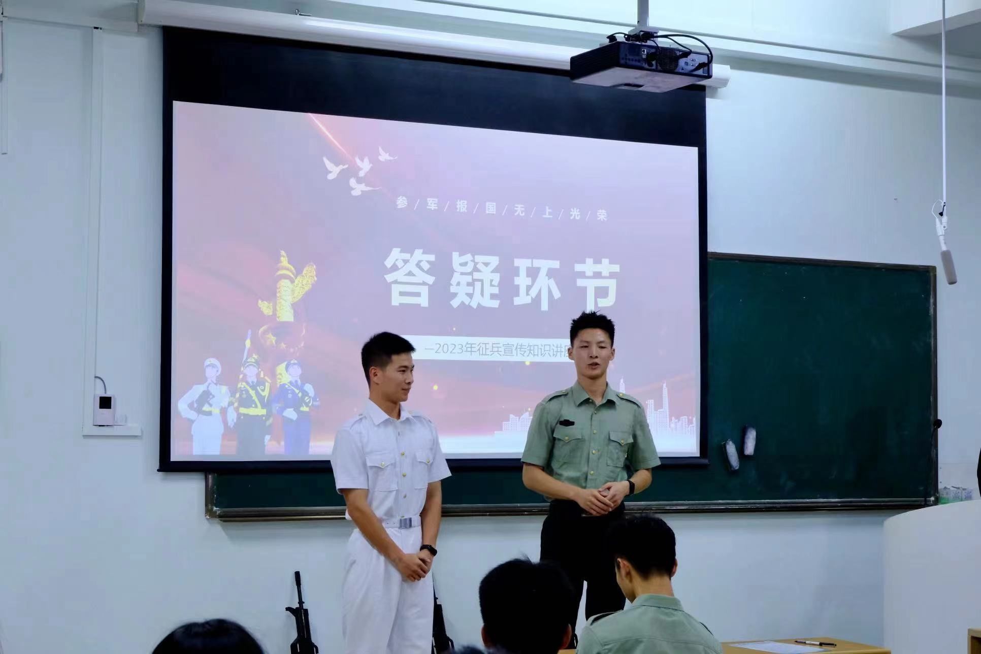 答疑环节,陈善炜和叶京安详细地给同学们一一解答并发放了征兵宣传手册。