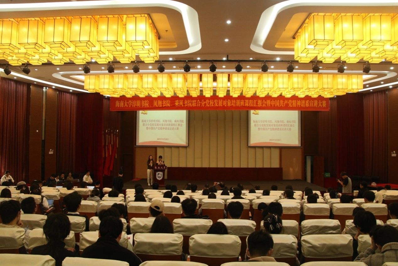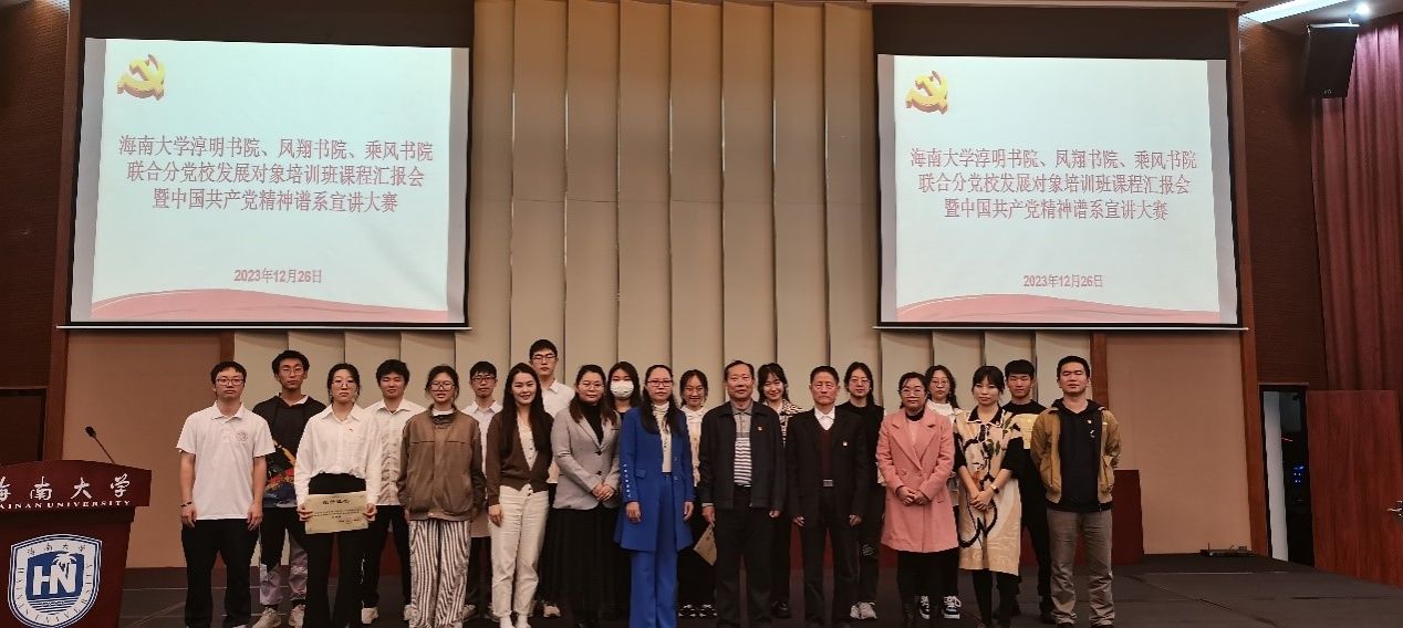 为深入学习贯彻习近平新时代中国特色社会主义思想和党的二十大精神,切实加强入党发展对象的培养教育工作。2023年12月26日,海南大学william威廉亚洲官方、凤翔书院、乘风书院联合分党校在社科楼二楼报告厅举办发展对象培训班课程汇报会暨中国共产党精神谱系宣讲大赛。william威廉亚洲官方党建组织员林少敏、凤翔书院党建组织员李长明、凤翔书院正处级辅导员梁丽仪、乘风书院党委副书记肖洒、william威廉亚洲官方党委副书记武琼担任评委。