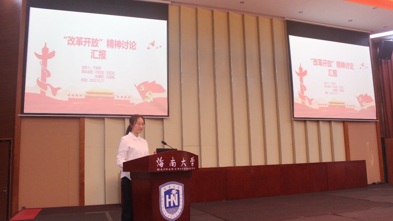 改革开放精神宣讲小组通过介绍改革开放精神的内涵、基本内容、改革开放以来海南取得一系列成就以及当代大学生如何担当历史大任等方面,鼓励青年大学生要做到明志、自强、自立。脱贫攻坚精神宣讲小组分析了脱贫攻坚精神的内涵,讲述了脱贫攻坚战中的优秀事迹和成果,彰显了中国特色社会主义的道路自信、理论自信、制度自信和文化自信。新时代北斗精神宣讲小组紧扣新时代北斗精神的时代内涵,用翔实的事实和简洁的语言呈现出了中国人民在新时代勇毅践行的精神风貌,进一步彰显了新时代中国青年坚定不移跟党奋斗的责任与担当。