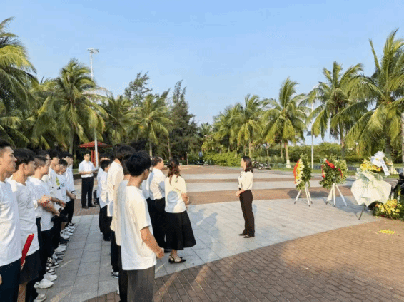 全体师生向为解放海南岛渡海作战英勇献身的烈士默哀,教师代表向革命英烈敬献花圈并整理了挽联。表达对先烈崇高的敬意与深切的缅怀。