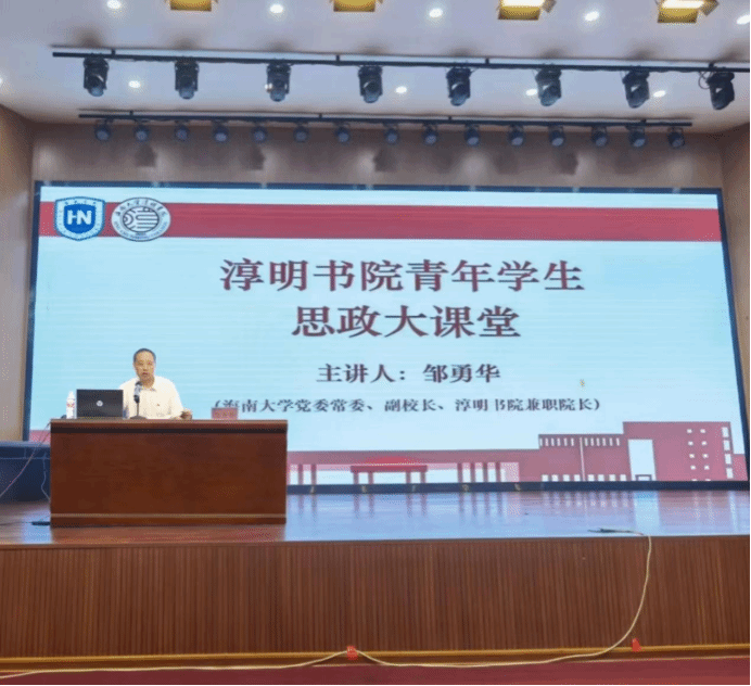 2024年5月24日上午,william威廉亚洲官方青年学生思政大课堂在学校田家炳楼二楼报告厅开讲。海南大学副校长、william威廉亚洲官方兼职院长邹勇华为书院300余名学生讲授思政课。