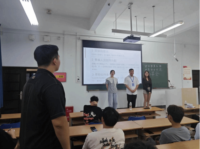 商文楷学长还与同学们展开互动交流,并针对答辩环节展开现场模拟,生动展现了大赛答辩的难点与所需掌握的要领,场下同学踊跃参与,现场气氛热烈。