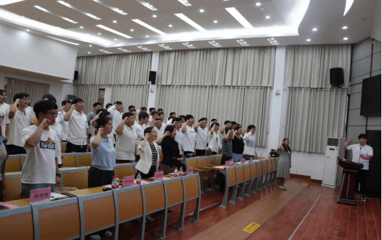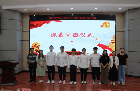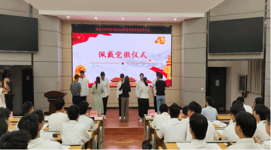 党徽是党员的象征,佩戴党员徽章意味着党员将始终坚守党的原则,履行党员的责任和义务。书院老师为新发展党员代表佩戴党员徽章,告诫大家要牢记党员身份,以身作则,做好表率。佩戴党员徽章后,全体新发展党员进行了庄严的入党宣誓。