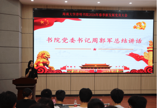 周郭军对新入党的同志表示祝贺。她介绍了书院党员日常管理、党员培养教育“四步走”工作模式,并对全体新发展党员同志们提出要求和期望:一是加强理论学习,提升党性修养;二是严守纪律规矩,筑牢底线意识;三是践行入党誓词,发挥先锋模范。