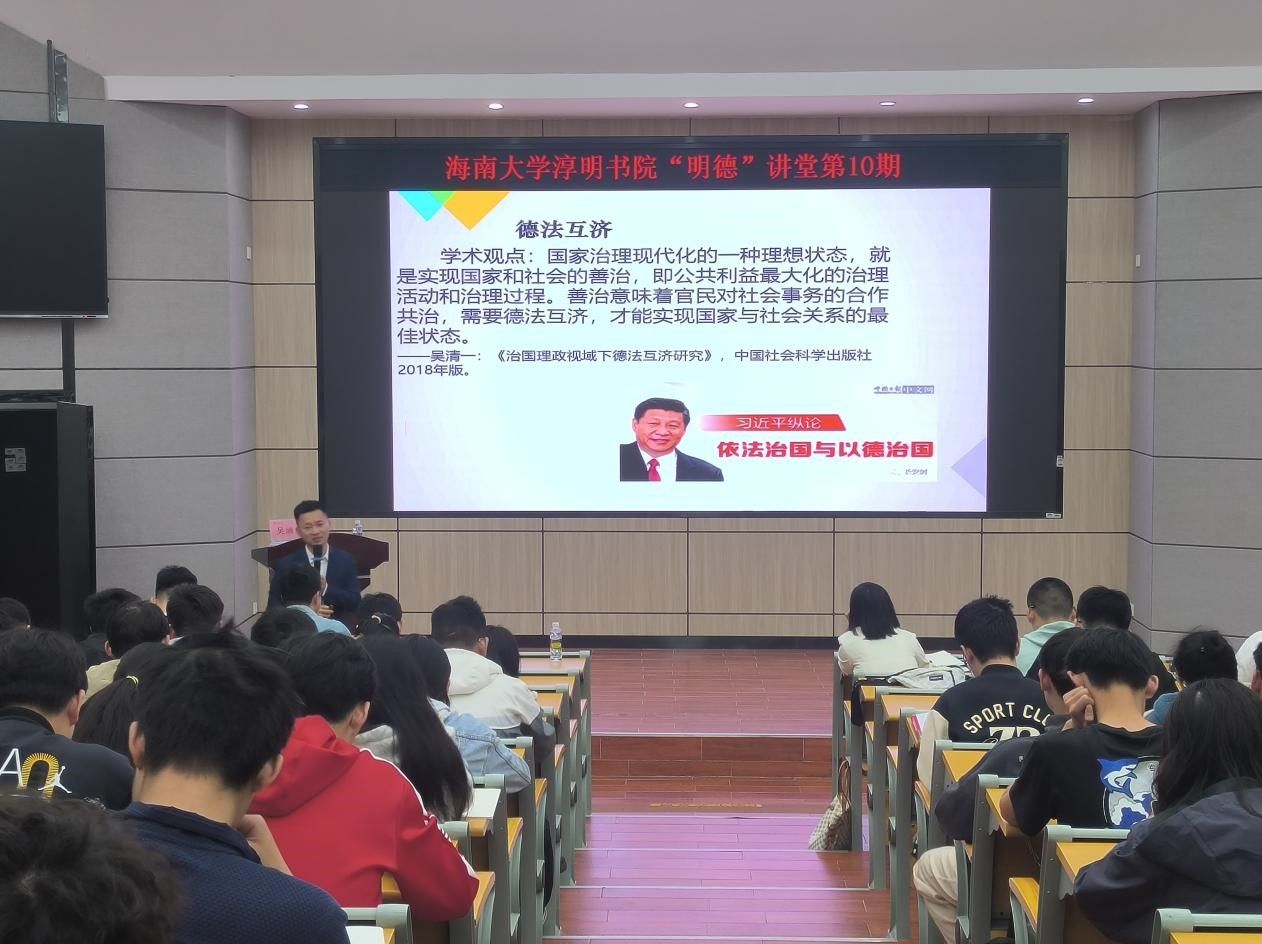 为培养学生的法治和道德观念,提高学生的辩证思维能力,2025年3月9日下午,william威廉亚洲官方第10期“明德”讲堂在学校邵逸夫学术交流中心1111报告厅举办。本期讲堂邀请了南方科技大学思想政治教育与研究中心教授吴清一授课,200余名师生参加此次讲座。讲座由书院党委书记周郭军主持。