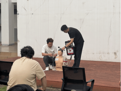 活动中,校医院樊老师通过理论讲解与实操演示相结合的方式,向同学们详细介绍了海姆立克急救法及自动体外除颤器(AED)的使用方法。此外,樊老师针对校园生活中可能遇到的烫伤、破伤风等问题提醒同学们要及时正确处理。