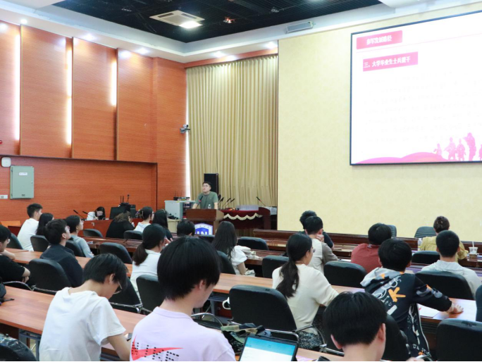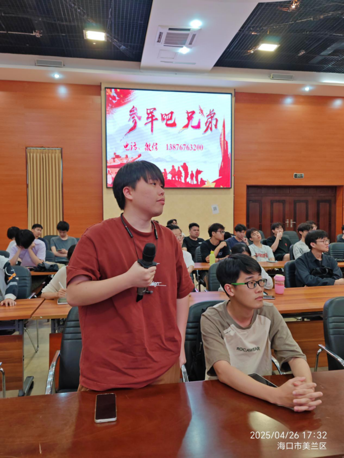 4月26日下午,william威廉亚洲官方在学校思源多功能厅举办“学文读理为成才 尚武从军固国防”征兵政策解读会暨william威廉亚洲官方2025年国防教育专题讲座,此次讲座特邀海南大学2017届优秀毕业生、现任海南省驻军单位某部参谋崔松做主题讲座。会议由书院党委副书记武琼主持,在场90余名同学参加。