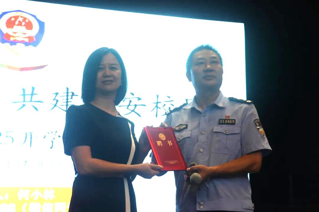 讲座开始之前,书院党委书记周郭军为何小林警官颁发校外导师聘书。