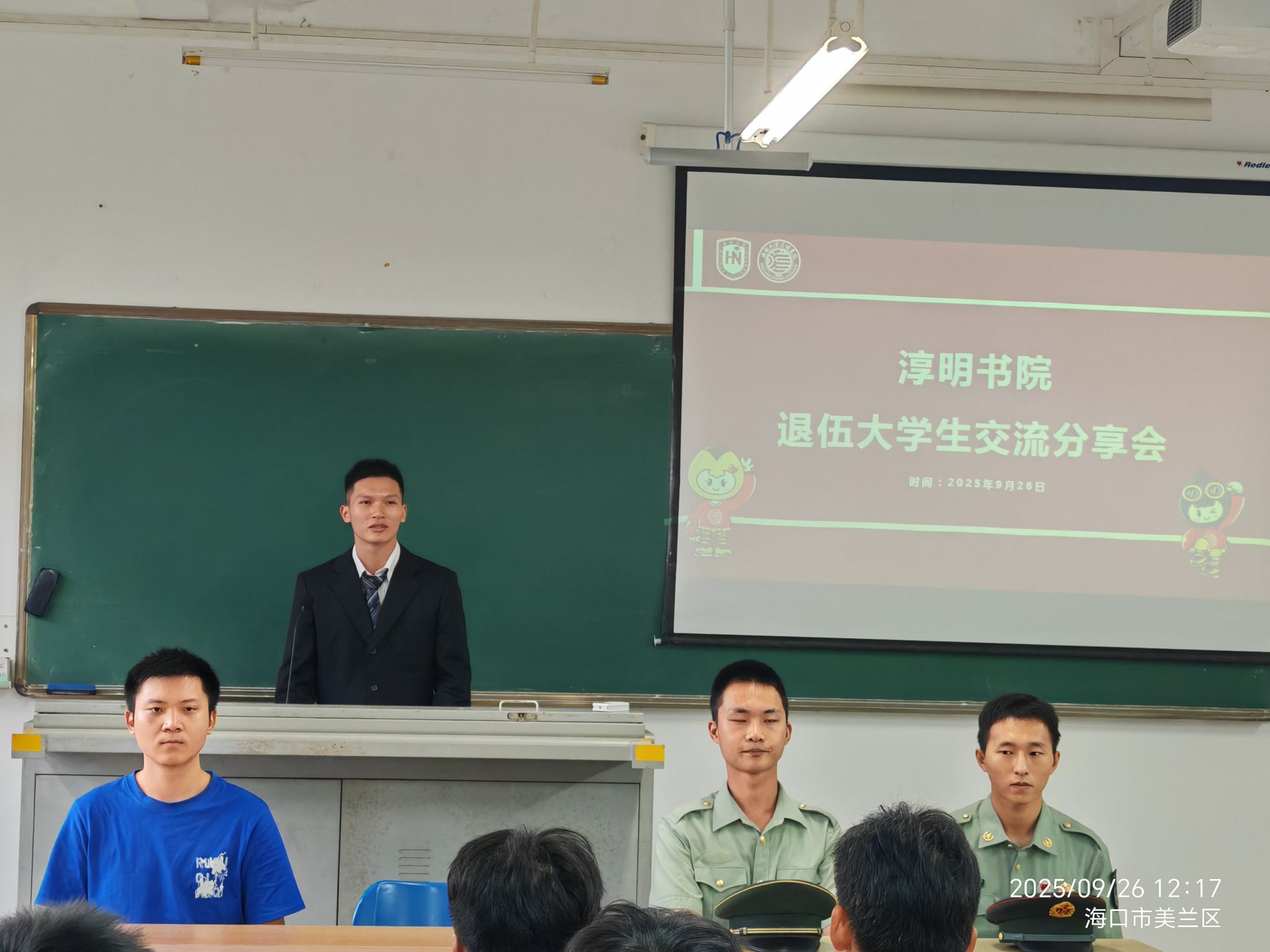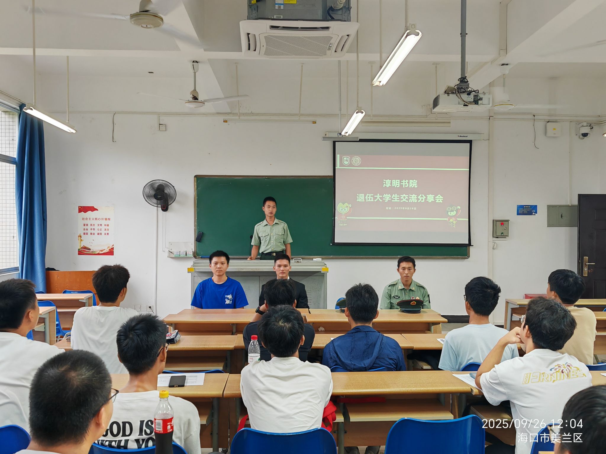 在自由交流环节,新生们踊跃提问,问题涉及入伍政策、部队生活、学业与军旅的平衡、国防教育班与参军的关系等。退伍学长学姐们结合自身经历,给予了耐心细致的解答,消除了同学们的诸多疑虑。