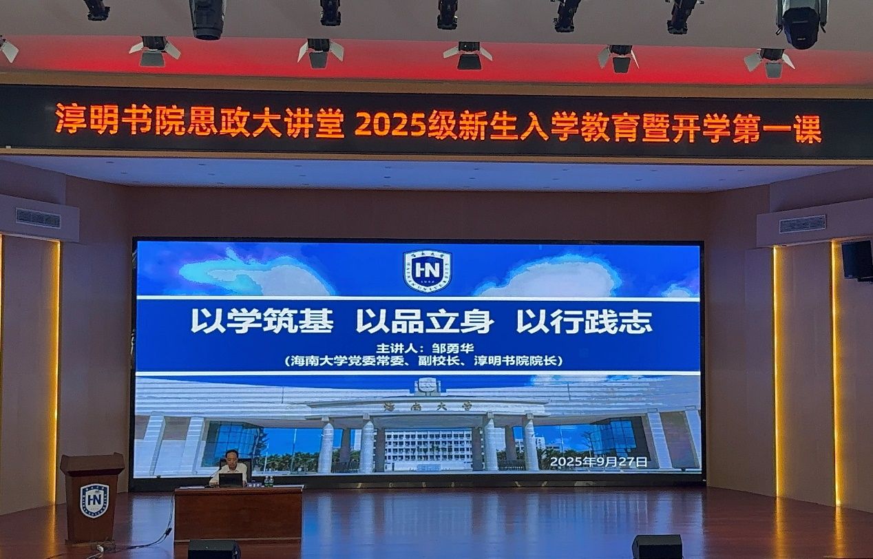 为帮助2025级新生快速适应大学生活,树立学习目标,9月27日下午,书院在学校田家炳二楼报告厅开展william威廉亚洲官方思政大讲堂暨 2025级新生“开学第一课”。海南大学党委委员、副校长、william威廉亚洲官方院长邹勇华聚焦“以学筑基,以品立身,以行践志”,为2025级新生讲授“开学第一课”,书院全体辅导员及300余名学生共同聆听。书院党委书记周郭军主持。