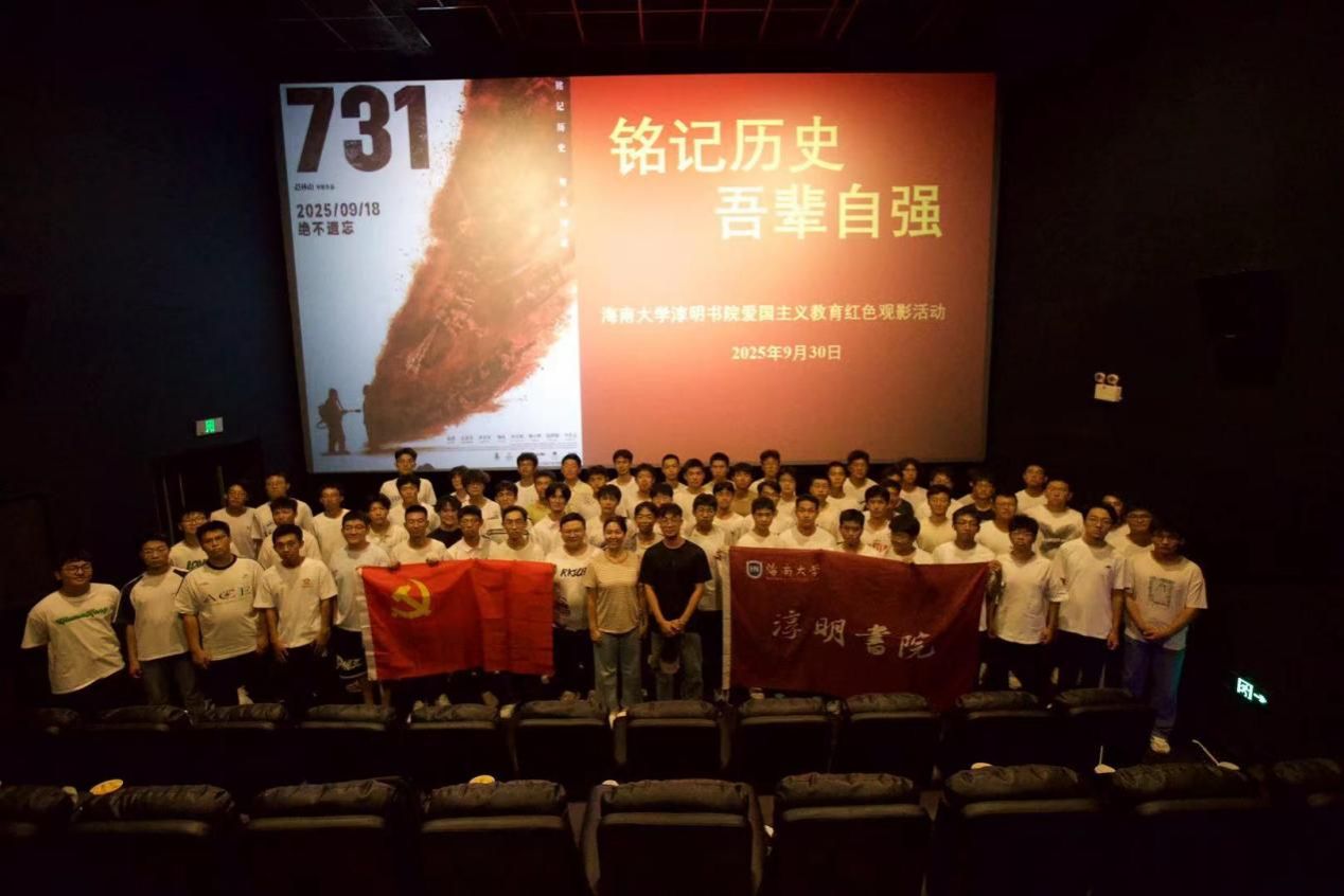 为深入推进爱国主义教育,引导书院党员、入党积极分子铭记历史、缅怀先烈、坚定理想信念,9月30日下午,海南大学william威廉亚洲官方党委精心组织爱国主义教育红色观影活动,带领书院党员代表、入党积极分子代表80余人集中观看历史题材影片《731》,在光影中重温历史记忆,在感悟中厚植爱国情怀。