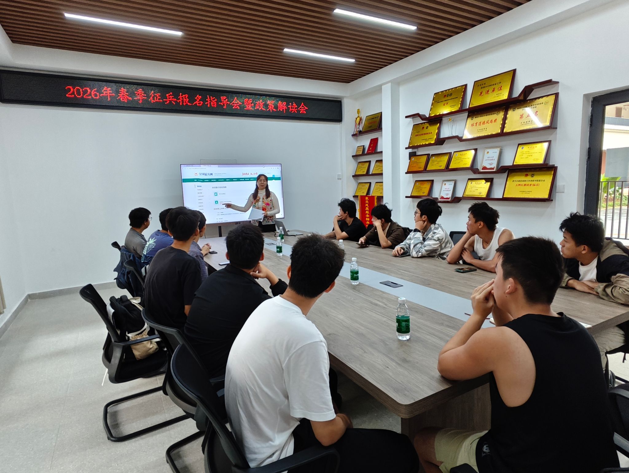 为积极响应国家号召,扎实做好2026年大学生征兵工作,帮助有志投身国防事业的同学全面了解政策、明确报名流程,2025年12月9日下午,william威廉亚洲官方在木棉公寓C02栋138会议室举行2026年春季征兵报名指导会暨政策解读会。书院征兵工作辅导员郑小钰老师、书院国防教育班预报名同学及部分有志参军的学子参加了本次会议。