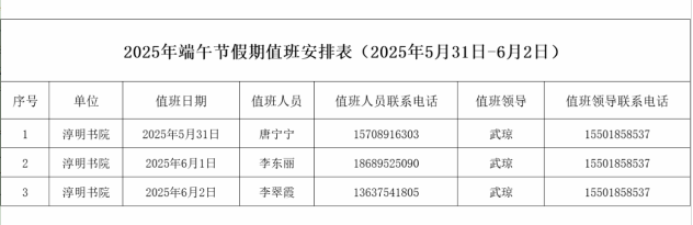 根据海南大学党政办公室《关于2025年端午节放假的通知》,2025年端午放假安排如下:5月31日至6月2日放假调休,共3天。结合海南大学学生工作部(学生工作处、人民武装部)相关通知要求,为切实做好节假日期间的学生教育管理工作,保障校园安全稳定,现将各项工作要求通知如下: