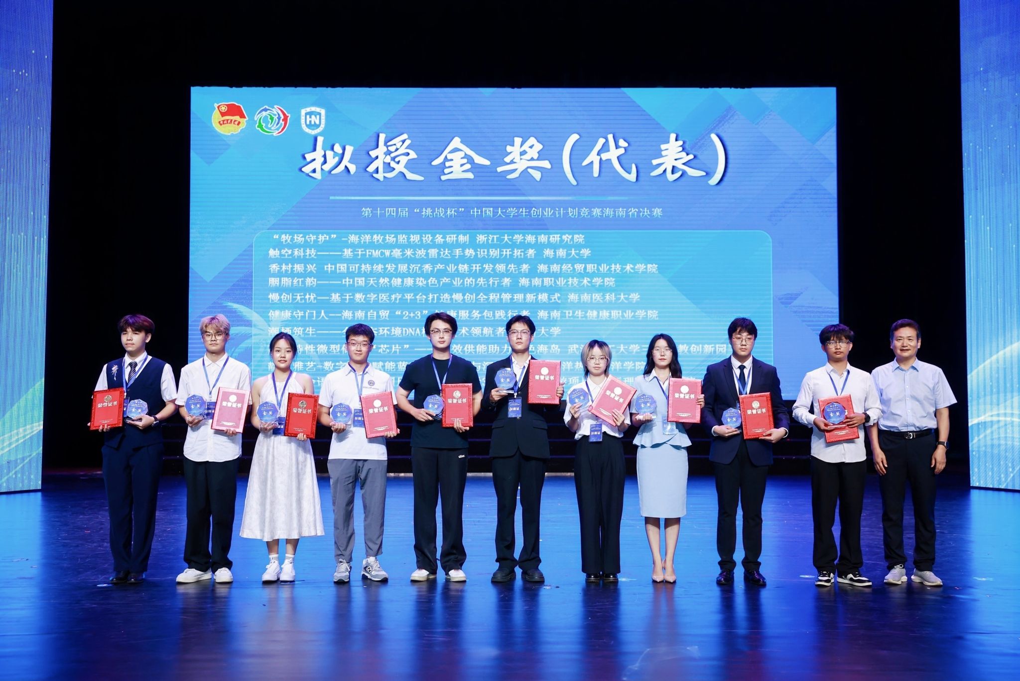 作为获奖代表(左五)参加“挑战杯”海南省颁奖典礼