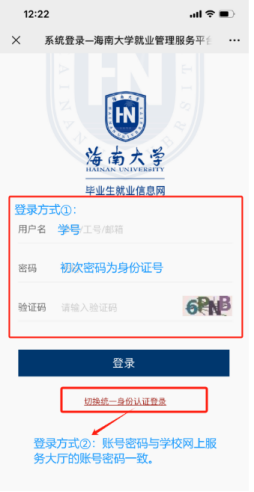 ①网页端:海南大学就业管理服务平台 https://jyxt.hainanu.edu.cn/a/login