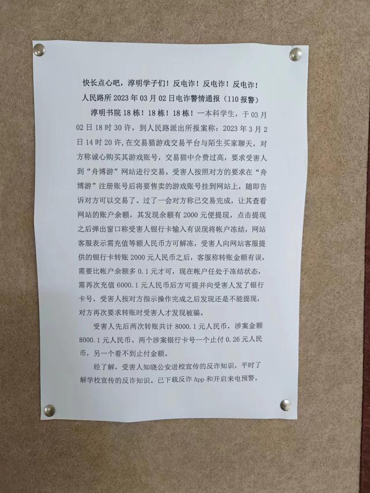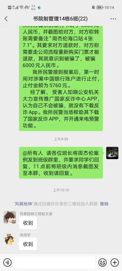 书院各班及时转发学校和人民路派出所最新反诈案例。