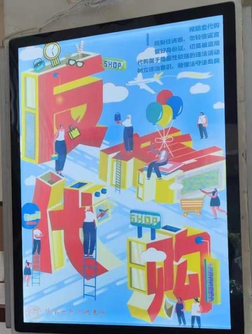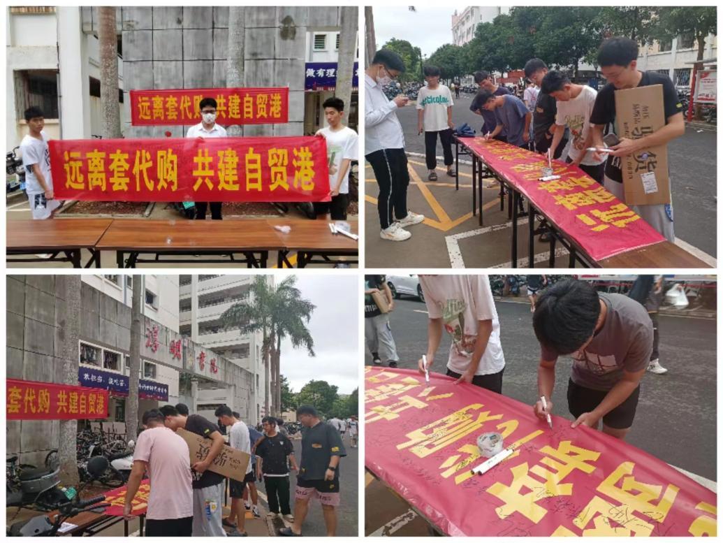 书院结合宣传教育活动主题,通过原创宣传海报,张贴学校统一宣传资料、滚动播出“套代购”宣传视频、承诺书签名、横幅签名、专题会议等方式,确保学生100%知晓了解“套代购”违法行为,人人承诺不参与“套代购”,进一步加深对离岛免税套代购行为的认识,增强同学们的法律意识和提高防范风险的能力,时刻提醒和教育引导学生要自觉远离“套代购”,学会界定套代购行为,掌握防范套代购的方法,维护自身的合法权益。