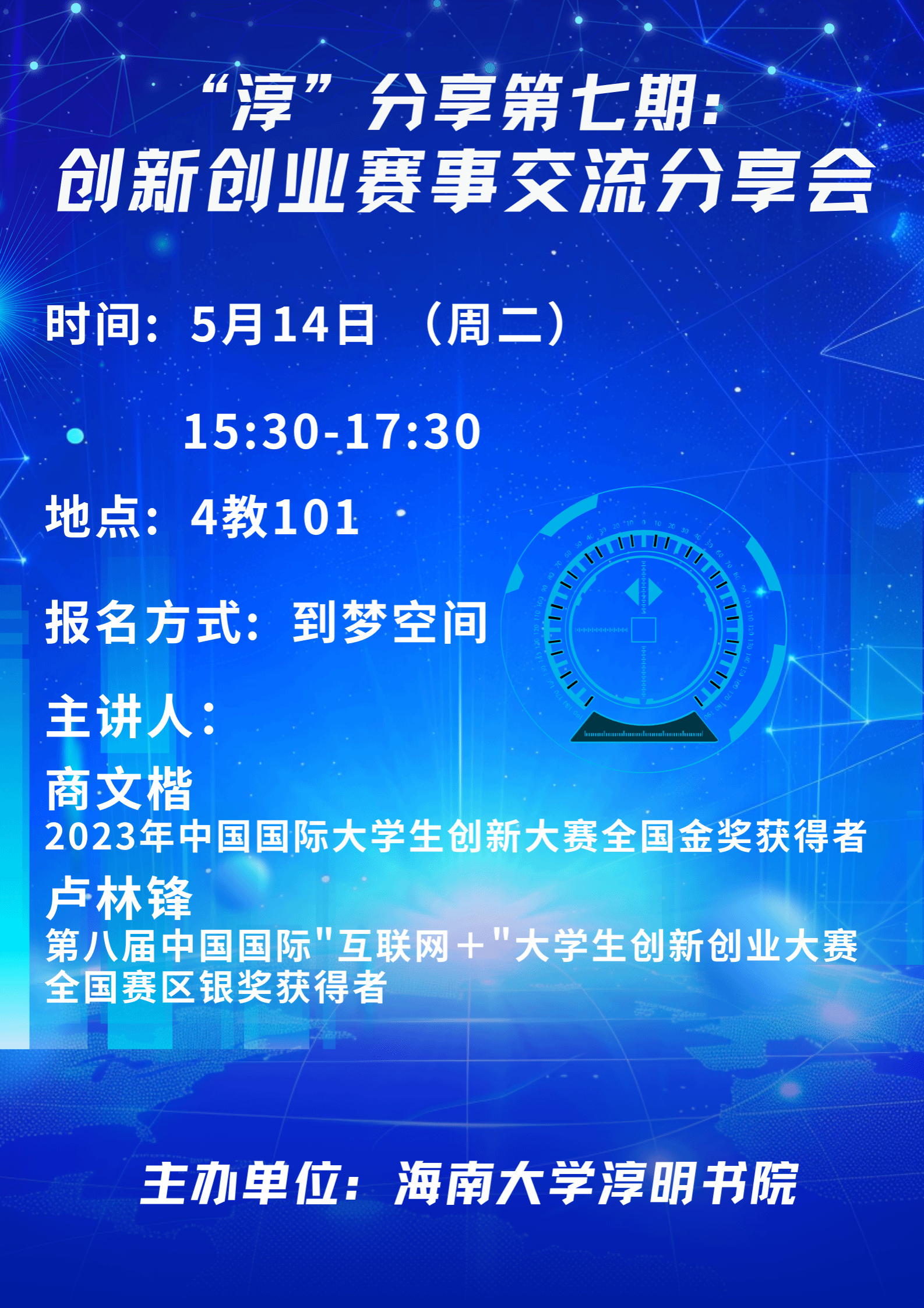 活动预告|william威廉亚洲官方“淳”分享第七期:创新创业赛事交流分享会